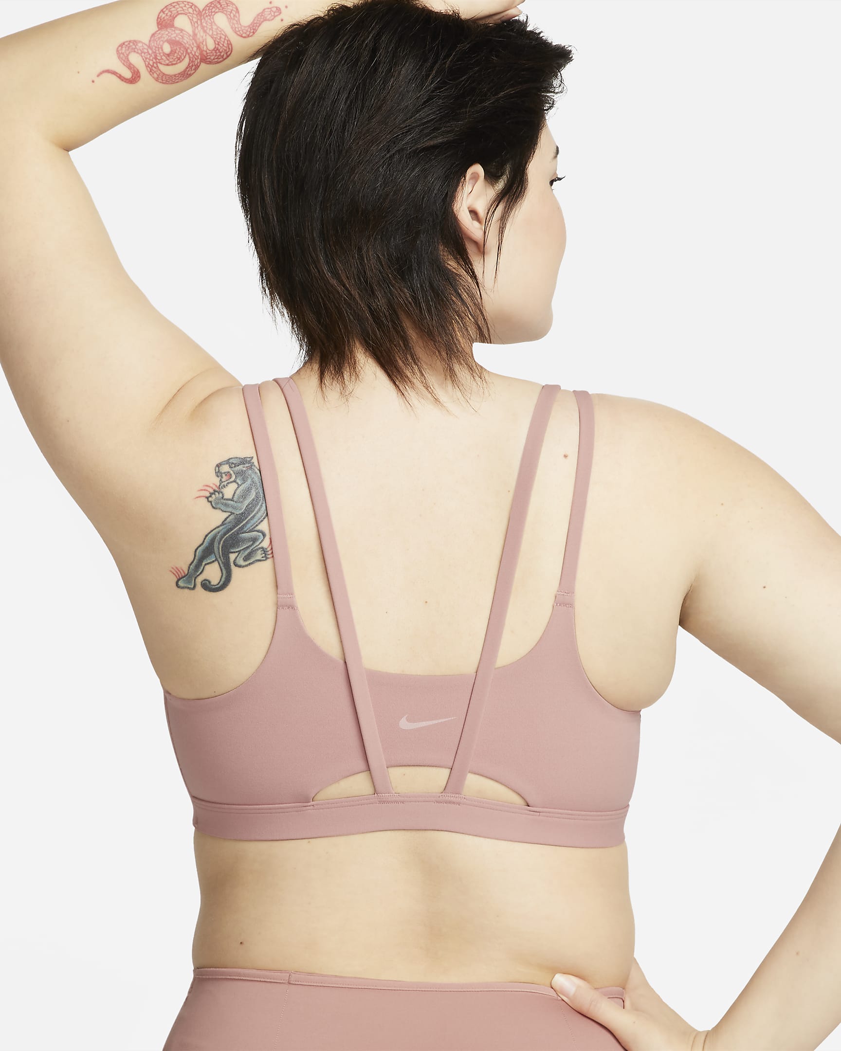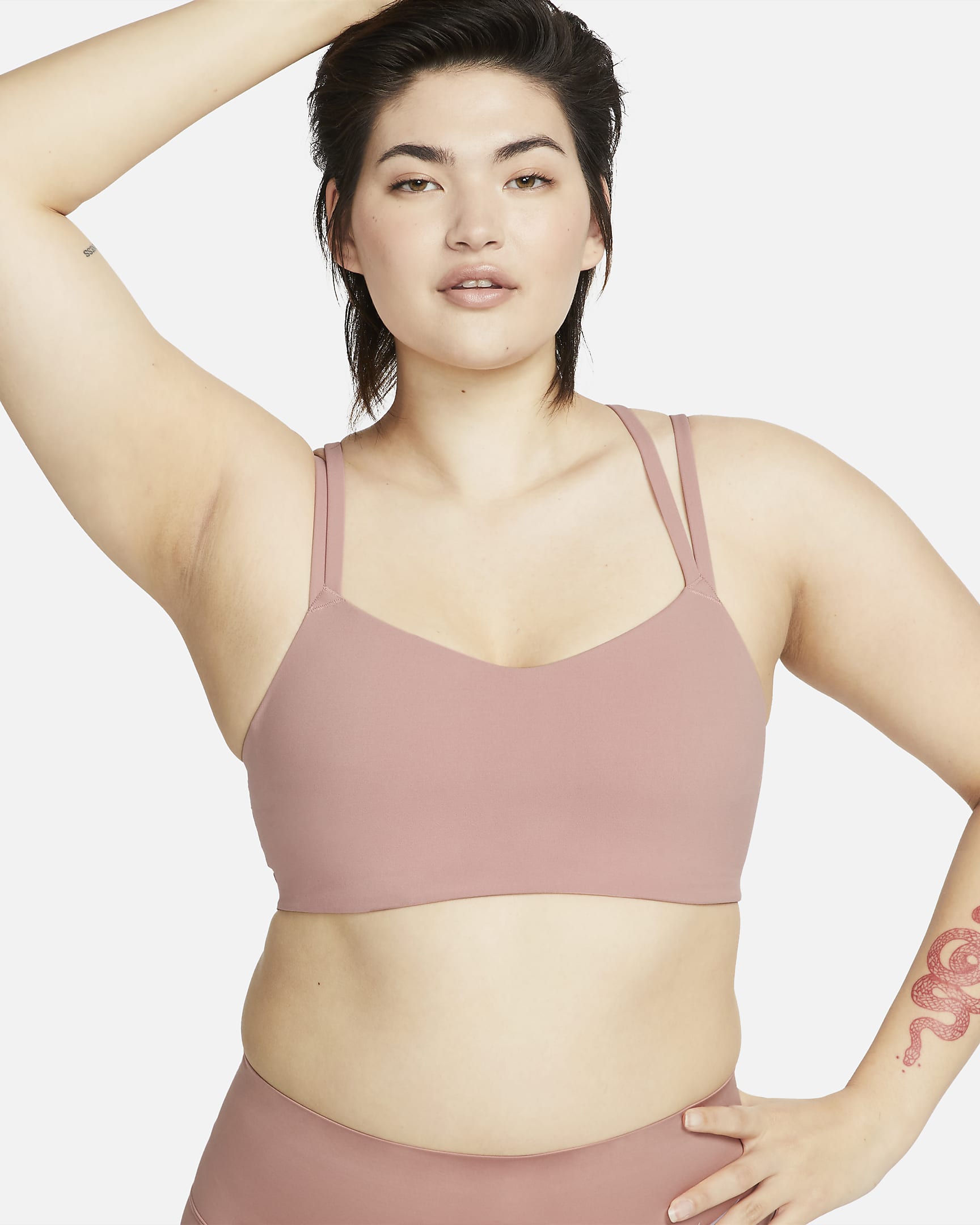 Feel confident all day long in this light-support Alate bra. A sewn-in 1-piece pad offers enhanced coverage and shaping while sweat-wicking technology keeps you cool and comfortable. The Infinalon fabric of the body and straps feels like you're being hugged by a silky cloud and stretches easily, giving you the ultimate freedom of movement. A rounded V-neck tops the bra off with a clean finish, so you might just forget you're wearing it.
