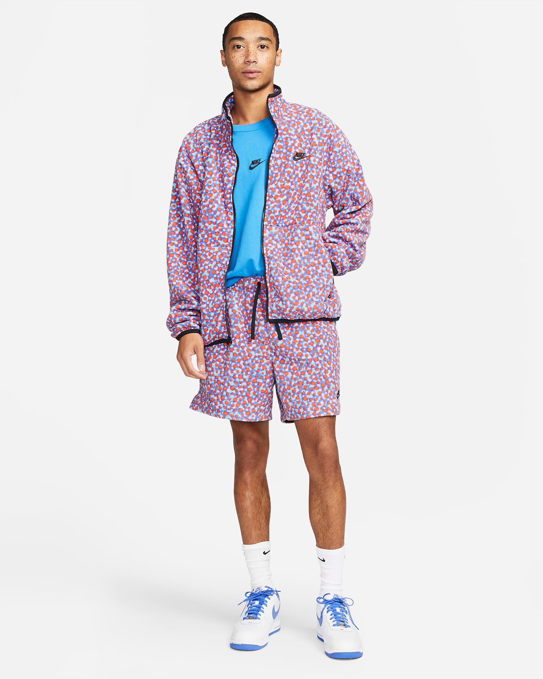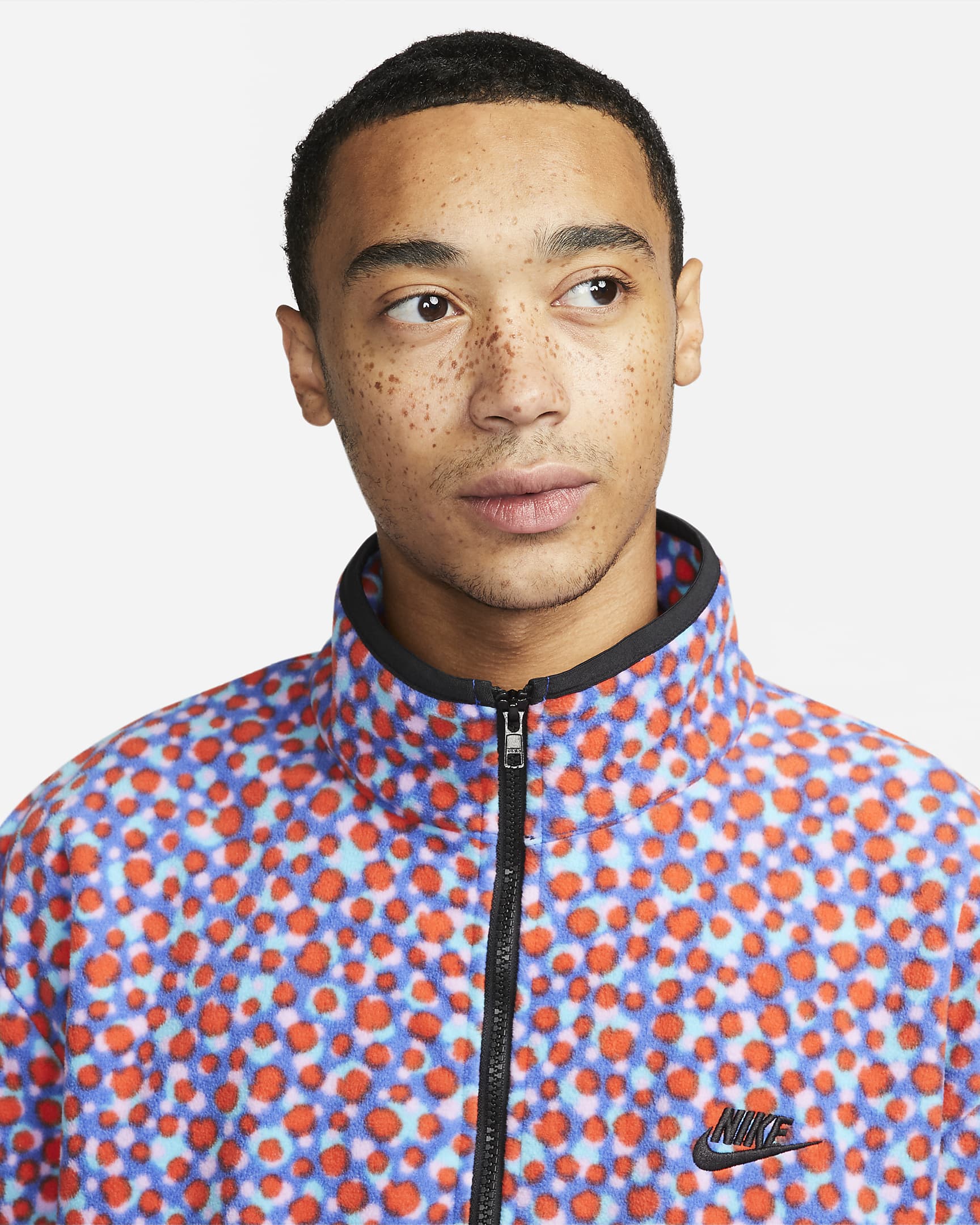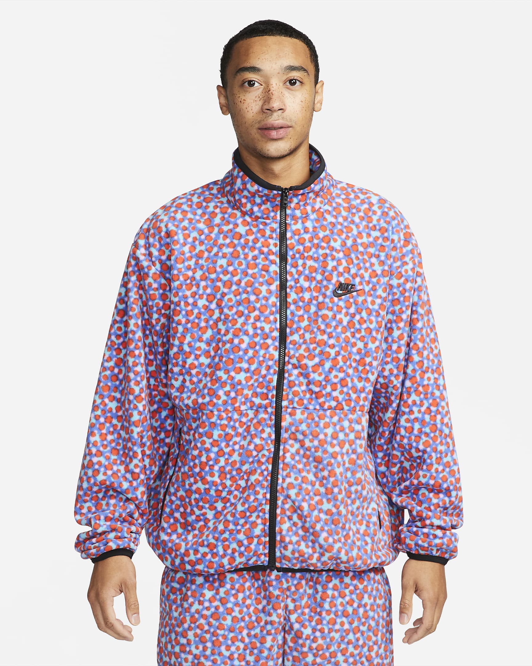 That multi-coloured dot pattern may seem like a trick for the eyes, but this well-equipped Nike Club Fleece+ jacket is every bit as comfy as it looks. Made with an oversized fit, it lets you layer underneath and move freely through your day. The tonal trim highlights the design and frames your body while the zip pockets give you secure spots to store your essentials and warm your hands.